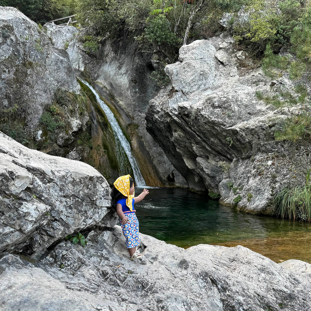 The next morning, we joined a tour group going to Mount Olympus National Park which is a bit north of the city. As many of you already know, in Greek mythology, Mount Olympus is known as the home of the Greek gods. Rita learned at the park’s information center that the mountains that make up this range have a wide variety of climates, flora, and fauna. We stopped by one of the waterfalls at the foothills, known for its emerald waters and Rita enjoyed some quiet time in nature.