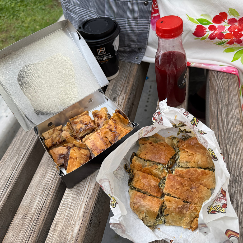 On our last day in the city, Rita wanted to make sure that we tried as many local delicacies as possible! We started the day by getting bougatsa (phyllo dough with various fillings) from Serraikon Bakery and then wandered around Aristotelus Square, where we stopped by a bookstore chain called Ianos.