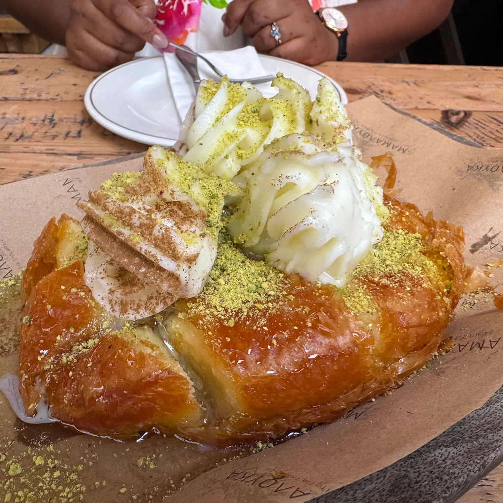 We wrapped up the day with an amazing dinner at Mamalouka, particularly the dessert galaktaboureko, which was prepared by our server table side. A fitting end to a wonderful trip!