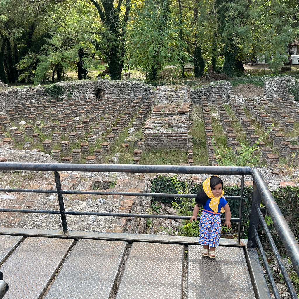 Afterwards, we made our way over to Dion Archaeological Park. Dion was an ancient town where Zeus and the Muses were worshipped, and the park has several important sites that are being excavated. Rita was particularly intrigued by the great bath complex, and she tried to figure out what all the pillars would have made up in this particular chamber.